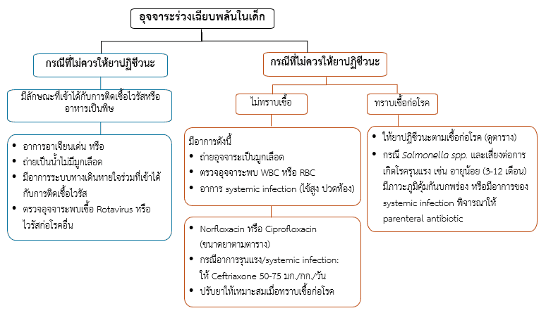 แผนภูมิแนวทางการให้ยาปฏิชีวนะโรคท้องร่วงเฉียบพลันในเด็ก